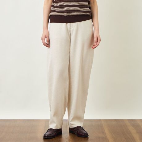 ももからひざ下にかけて緩やかに丸みを持たせたアウトラインが特徴のパンツ。セットアップでも単品でも合わせやすいボトムです。同素材のブルゾン(R9F47749)とジャケット(R9F46749)のセットアップもおすすめです。