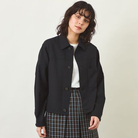 ドライタッチで軽いリネン調ポリエステルを使ったトラッカージャケット、HARLTON(ハールトン)。カフスレスや裾の切替を入れない軽い仕様にしてシャツ感覚で着れるジャケットにしました。Gジャンのようにカットソー、シャツと合わせていただけます。