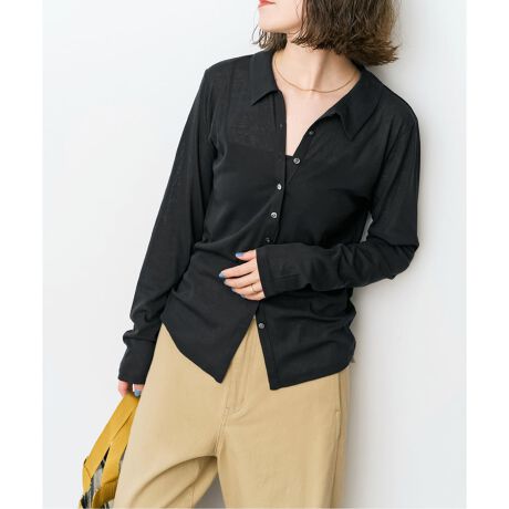 コットンの強撚糸を使用した、肌触りの良いシアーシャツカットソー。繊細な表情感があり、上品で涼やかな印象に仕上がっています。