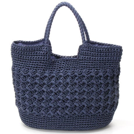 ポリエステル糸を丁寧に編み込んだ柄編みクロッシェトート。
