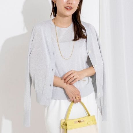 ・ラメの糸を使用したシャイニーなVネックカーディガン