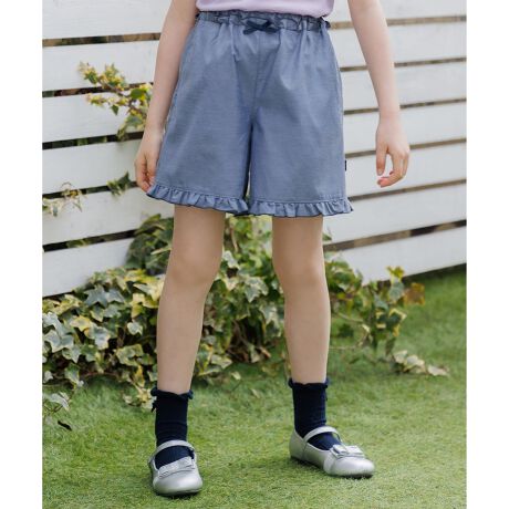 ■デザイン裾のフリルが可愛らしいショートパンツです。後ろのポケット口にスカラップとお花の刺繍をあしらい、後ろ姿まで可愛らしい1枚です。