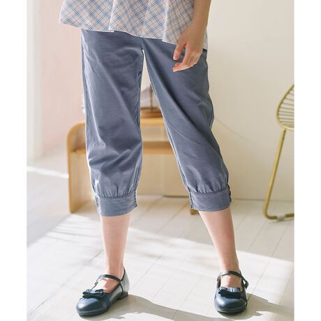 ■デザイン裾をシャーリングで絞った7分丈のパンツです。裾にボリュームを持たせつつもすっきりとしたシルエットでチュニックとのコーディネートがおすすめです。