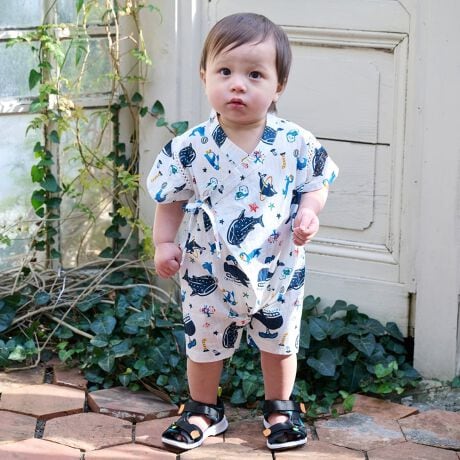 水族館の人気者たちを描いたかわいらしい甚平タイプのカバーオールです。
