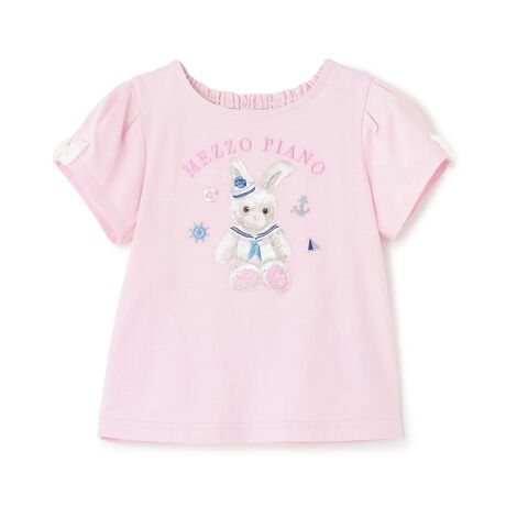 マリンスタイルに変身したかわいい動物の刺しゅうアップリケが目を引くTシャツです。ピンクにはうさぎ、エメラルドグリーンと紺にはネコがデザインされています。後ろ衿ぐりはゴム仕様のため、お着替えがラクラクなのもうれしいポイント。触れると冷たく感じる接触冷感素材を使用しており、暑い季節に活躍する一着です。内側にお名前を記入できるタグつき。