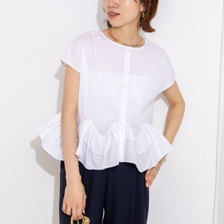 ウオッシャブルペプラムフリル2WAY半袖ブラウス