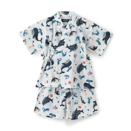 水族館の人気者が集まった魅力的な甚平です。