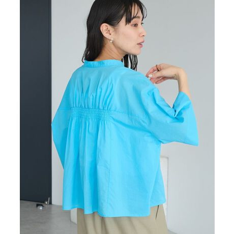 *春〜初夏の軽やかな着回しにぴったりな一枚。ほどよい抜け感で品よく決まる バックギャザーポンチョシャツ。