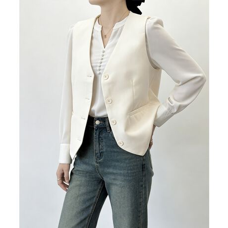 シャープなシルエットが魅力のテーラードデザインベスト。