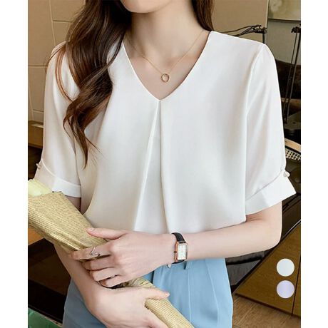半袖シャツブラウスレディースVネック夏服