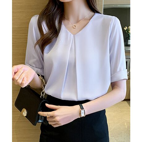 半袖シャツブラウスレディースVネック夏服
