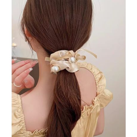サテンヘアゴム パール付き シュシュ