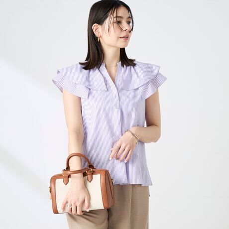 ・肩の2段になったフリルがポイントで、シンプルになりがちな夏のコーデも、1点投入で華やぐブラウス