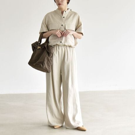 ハーフスリーブシャツと同素材のワイドパンツがセットになったアイテム。