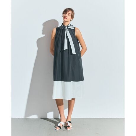 [型番:0226231023]【Japan Fabric】軽くふくらみ感のあるトリアセ/コットンタッサー素材を使用した取り外し可能なボウ付タックAラインドレス。同シリーズでお作りしたボリュームスリーブトップ【品番:0226241023 】のご用意もございます。※こちらのモデル着用画像はサンプル品を撮影しております。実際の商品と仕様、加工、サイズが若干異なる場合がございます。予めご了承くださいませ。