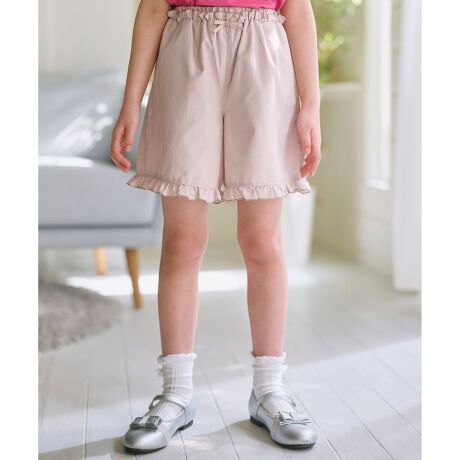■デザイン裾のフリルが可愛らしいショートパンツです。後ろのポケット口にスカラップとお花の刺繍をあしらい、後ろ姿まで可愛らしい1枚です。