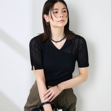 《手洗い可能》リブシアーオープンカラープルオーバー