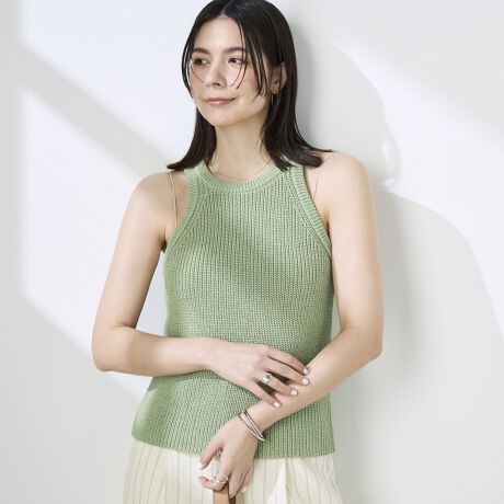 《手洗い可能》ペーパー混片畦アメスリタンクトップ