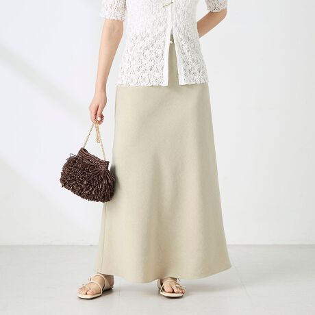 ・麻のようなナチュラルなスラブ調の表情のある合繊素材を使用したナロースカート