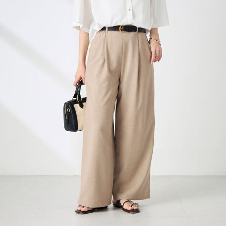 《セットアップ対応》ウォッシャブル麻調ワイドパンツ