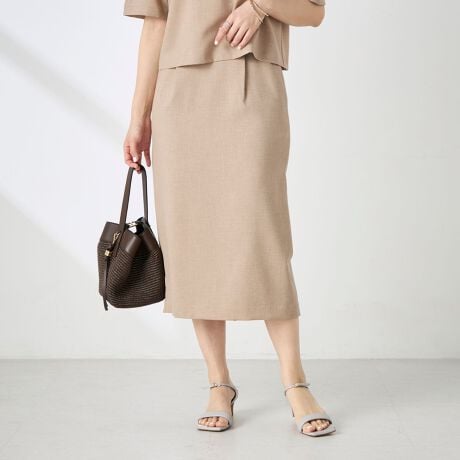 《セットアップ対応》ウォッシャブル麻調タイトスカート