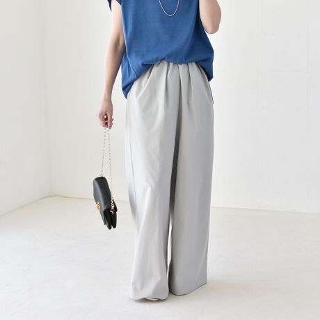 たっぷりとしたギャザーが印象的な、リラックス感のあるワイドストレートパンツ。