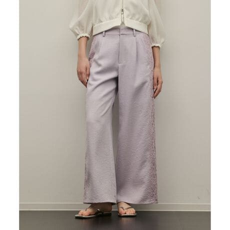 [型番:0126211117]落ち感のある麻混のキャンバス素材を使用したワイドパンツ。サイドに高級感のあるサイドレースをつけたグレースらしいデザインとなっております。※こちらのモデル着用画像はサンプル品を撮影しております。実際の商品と仕様、加工、サイズが若干異なる場合がございます。予めご了承くださいませ。