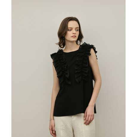 [型番:0126242209]シアー素材とレース素材で作ったボリューム感のあるフリルが華やかなカットトップス。※こちらのモデル着用画像はサンプル品を撮影しております。実際の商品と仕様、加工、サイズが若干異なる場合がございます。予めご了承くださいませ。