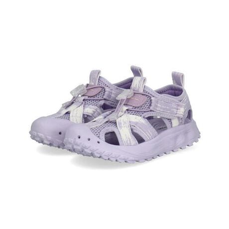またつま先・踵を覆うデザインと、つま先を巻き上げたソールで、小さな足を衝撃や石などから守る保護性を高めた構造。