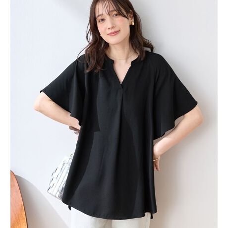 ・ラグラン切替のフレアスリーブは腕回りの窮屈感を抑え、涼しさと体型カバーの両方を叶えます