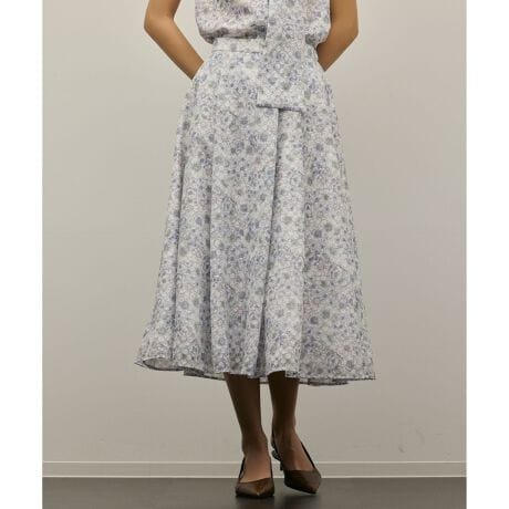 シアーフラワープリントジャガードフレアスカート