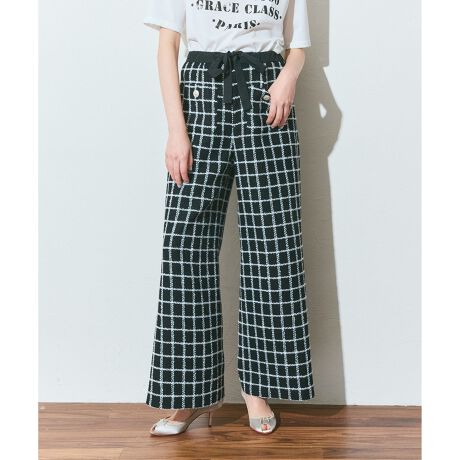 ヴィンテージのツイード資料のアーカイブを元にブライト感のあるレーヨン、マットな和紙、ナイロンの糸で織られた、表情感のあるチェックツイードイージーパンツ。