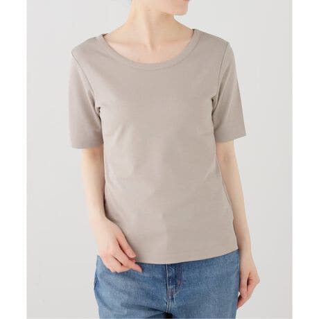 首元の開きが美しく、シンプルながらも1枚で上品に着られるクルーネックカットソー。