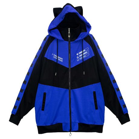 LISTEN FLAVOR ゲーミング猫耳ジャージパーカー【BLUE×BLACK】