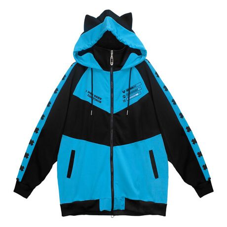 LISTEN FLAVOR ゲーミング猫耳ジャージパーカー【AQUA×BLACK】
