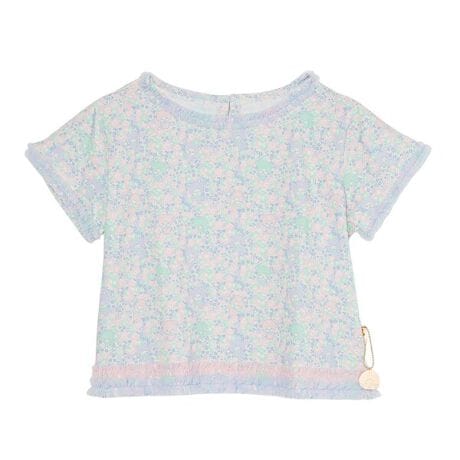 [型番:4261-2001]チュールを贅沢にあしらったウィメンズサイズのショート丈トップスにモンチッチコラボ柄が登場☆コラボアイテムはモンチッチのお顔の限定チャーム付き♪ 伸縮性のある柔らかなカットソー素材が嬉しい。ゆとりあるシルエットなので、すっきりとしたボトムとコーディネートするのがおすすめです☆※総柄生地のため、イメージ画像と実際の商品の柄の位置などが異なる場合がございます。(c)SEKIGUCHI