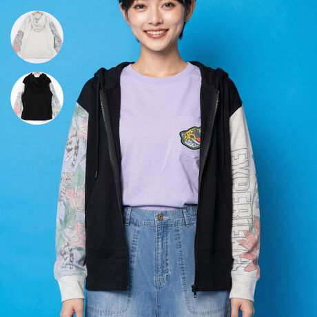 【遊びゴコロたっぷり!ポップな袖切替パーカー】