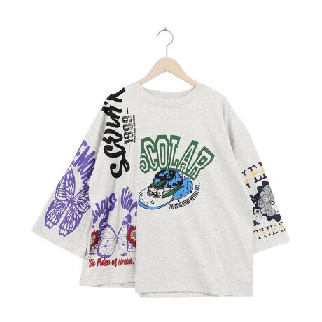 ・袖や身頃の切り替えで、パーツごとに異なるプリントが楽しめる一枚