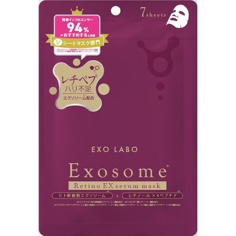 ヒト幹細胞エクソソームとレチノールを配合した高機能シートマスクで、エイジングケアやハリ不足の肌にアプローチします。
