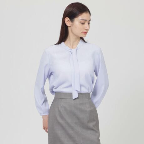 美しいシルエットにこだわったボウタイブラウスです。