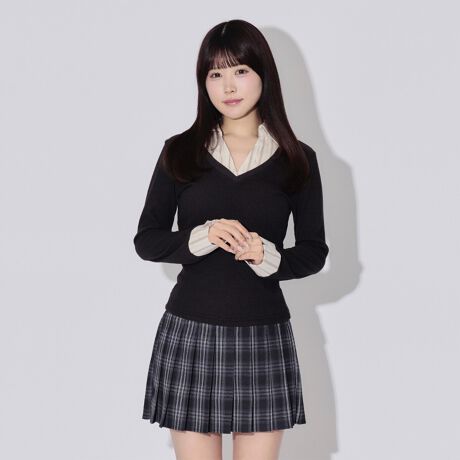 ・襟と袖先は切り替えでレトロチェック柄がアクセント。