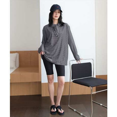 膝上丈のハーフレギンスはリブ生地の為スパッツ感がなく、補正下着工法による着痩せ効果を期待。