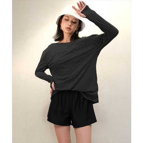 無地とボーダーで生地感が違うラッシュガードはスタンダードなシンプルデザイン。