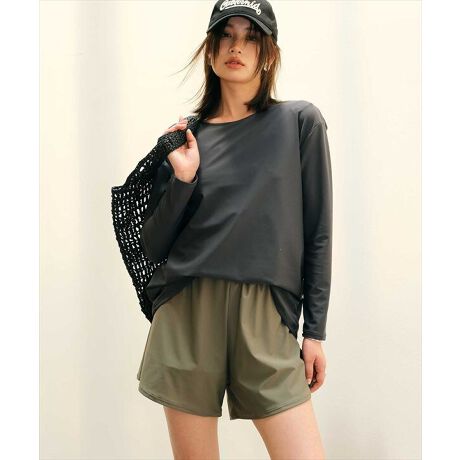 ショートパンツはフレアなシルエットなので楽に着られ、ノンストレスな着やすさが◎