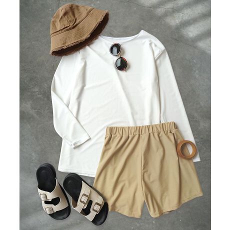 ショートパンツはフレアなシルエットなので楽に着られ、ノンストレスな着やすさが◎