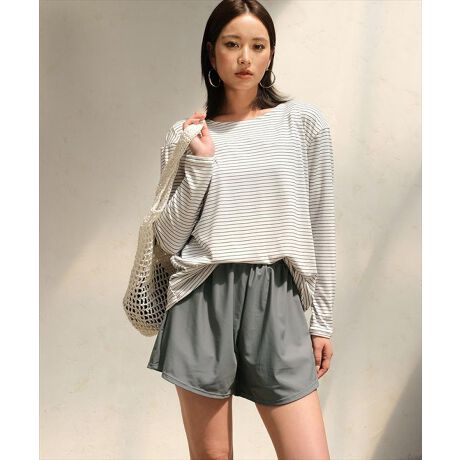 ショートパンツはフレアなシルエットなので楽に着られ、ノンストレスな着やすさが◎