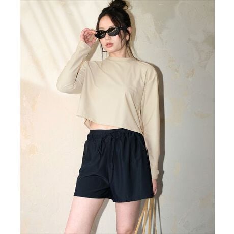 ラッシュガード、ビキニ、ショーツ、ショートパンツの4点セットです。
