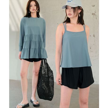 フレアに広がった長袖ラッシュガードはチュニック丈になっており、ラフな着やすさが◎