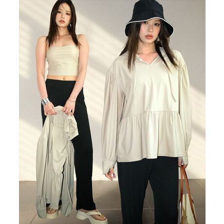 ギャザーを施す事でフリルのようなフレアラインをつくり、ガーリーにまとめます。