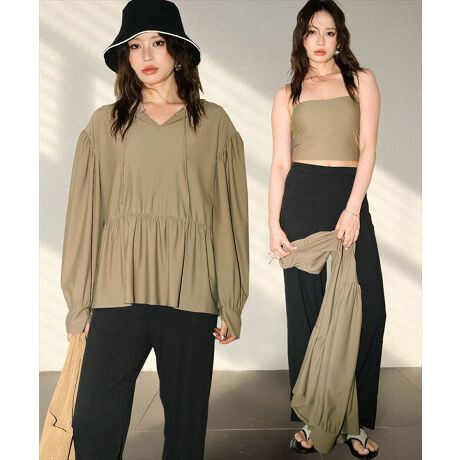 洋服のように気軽に着られるカジュアルデザインのセット水着。